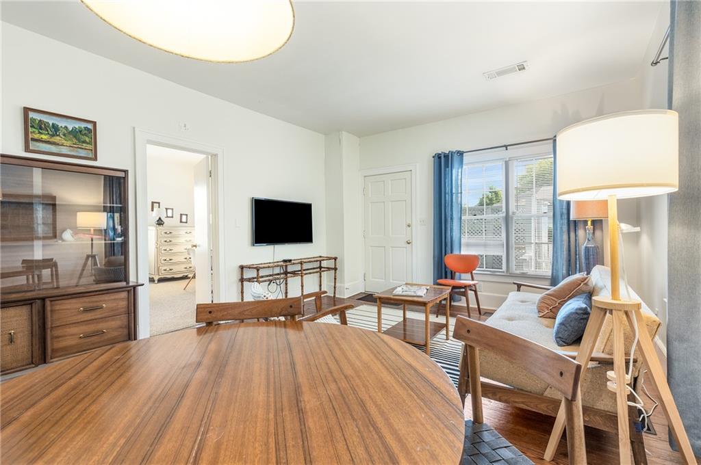 Set above Whitespace Gallery in a reimagined carriage house, this one-bedroom, one-bath apartment marries historic character with mid-century modern design. The fully furnished space is filled with natural light, thoughtfully appointed furnishings, and the ease of all utilities included. A private deck extends the living space outdoors, perfect for unwinding in a neighborhood that feels like no other. Living here means being in the center of Inman Park—Atlanta’s first garden suburb and now one of its most vibrant intown communities. The tree-lined streets lead to boutiques, cafés, and some of the city’s best restaurants, from casual neighborhood favorites to world-class dining destinations. The BeltLine, Krog Street Market, and Little Five Points are just blocks away, while Midtown, Old Fourth Ward, and downtown Atlanta are all within easy reach. This isn’t just a place to live—it’s a chance to experience one of Atlanta’s most dynamic neighborhoods from the comfort of a historic yet modern home.